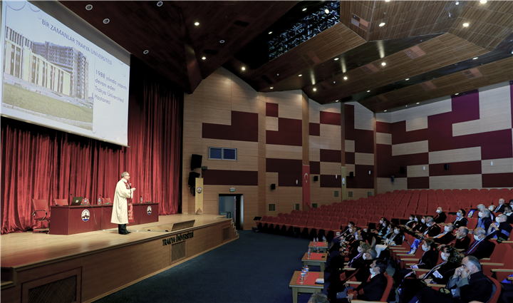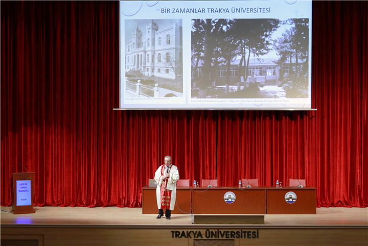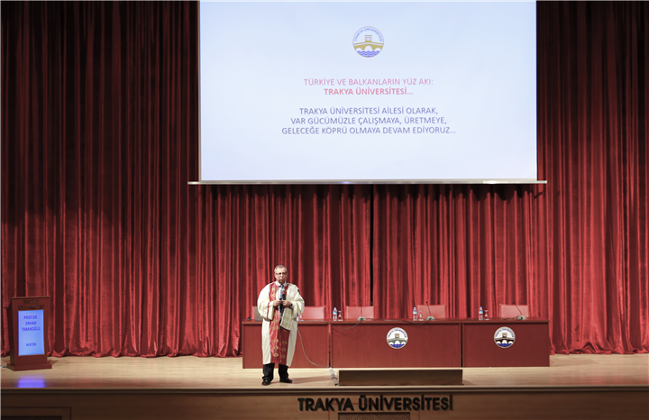 Trakya Üniversitesinde kurum aidiyeti oluşturacak güzel bir geleneğin başlangıcı olarak gördükleri kuruluş yıl dönümü kutlamalarını gelecek yıllarda da sürdürmeyi planladıklarını ifade eden Rektör Prof. Dr. Erhan Tabakoğlu; Edirne’de yükseköğretim tarihi, Trakya Üniversitesinin kuruluş aşamaları ile Trakya Üniversitesinde geçmiş dönemde yapılan çalışmalardan bahsederek rektörlük süresi boyunca yapılan çalışmalar ve hayata geçirilen projeler hakkında bilgi verdi.