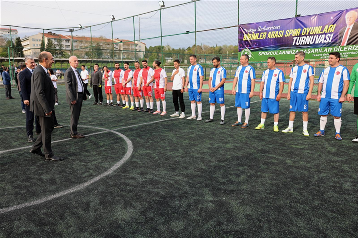 Trakya Üniversitesi bünyesinde düzenlenen “Birimler Arası Spor Oyunları Turnuvası”, futbol ve voleybol maçlarıyla başladı. Ayşekadın Yerleşkesi’ndeki halı saha ve spor salonunda oynanan müsabakalarla start alan turnuvanın açılışında ilk vuruşu Rektör Prof. Dr. Mustafa Hatipler yaptı.