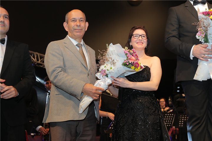 Konser sonunda ayakta alkışlanan sanatçılara, Trakya Üniversitesi Rektörü Prof. Dr. Mustafa Hatipler, Rektör Yardımcıları Prof. Dr. Mustafa Tan ve Prof. Dr. Eylem Bayır tarafından çiçek takdim edildi.