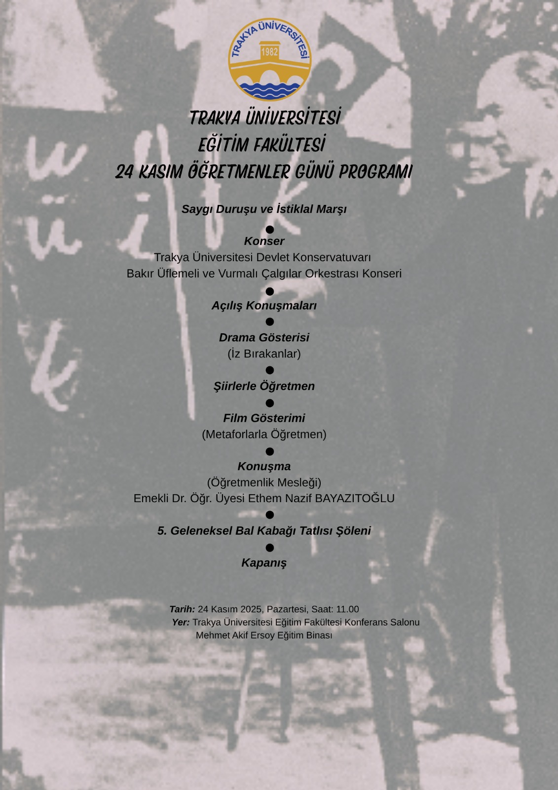 TRAKYA ÜNİVERSİTESİ EĞİTİM FAKÜLTESİ 24 KASIM ÖĞRETMENLER GÜNÜ PROGRAMI
