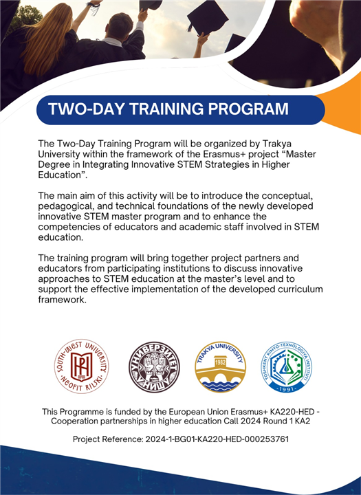 Avrupa Birliği Erasmus+ KA220-HED programı kapsamında desteklenen “Master Degree in Integrating Innovative STEM Strategies in Higher Education” başlıklı proje çerçevesinde düzenlenen iki günlük uluslararası akademik personel eğitimi, yarın Trakya Üniversitesi ev sahipliğinde başlayacak.