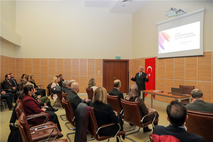 Toplantının devamında Kalite Koordinatörlüğü tarafından “2025 Kalite Süreçlerinde Genel İyileşmeler” başlıklı sunum gerçekleştirildi. Program kapsamında Kalite Komisyonu bünyesinde faaliyet gösteren çalışma gruplarının yıl boyunca yürüttükleri çalışmalar ele alındı.