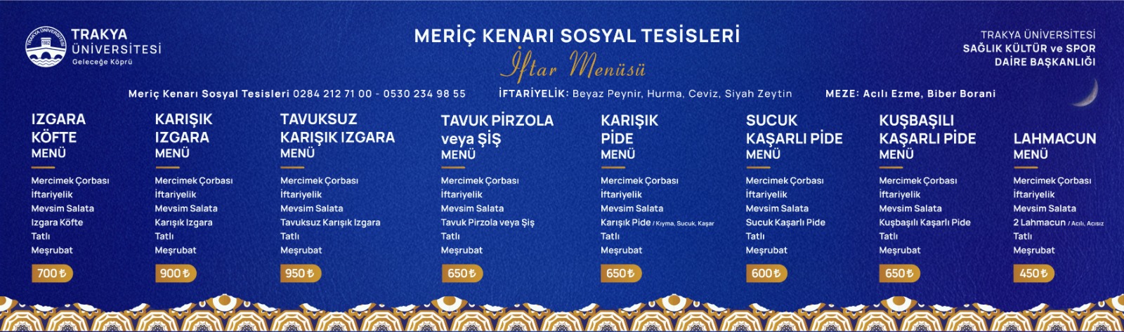 TRAKYA ÜNİVERSİTESİ MERİÇ KENARI SOSYAL TESİSLERİ İFTAR MENÜSÜ