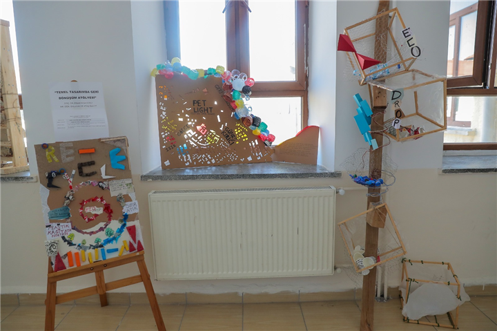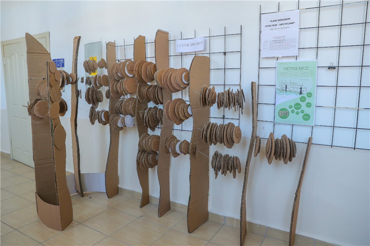 7 atölyede 56 öğrencinin katılım sağladığı ve 10’a yakın eserin yer aldığı sergi 1 ay boyunca açık kalacak.