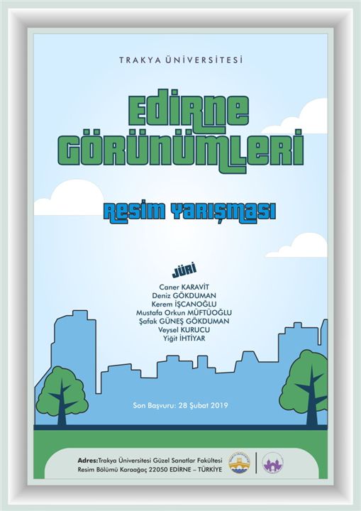 Yarışma şartnamesine ulaşmak için: http://kolajart.com/wp/2018/08/15/trakya-universitesi-edirne-gorunumleri-resim-yarismasi-son-basvuru-28-subat-2019/
