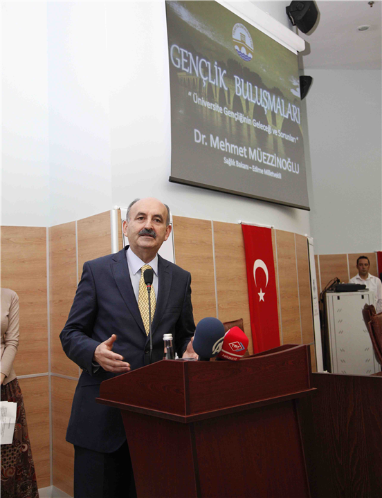 Daha sonra Sağlık Bakanı Dr. Mehmet MÜEZZİNOĞLU, Edirne Valisi Hasan DURUER, Rektör Vekili Prof. Dr. Süleyman PİŞKİN, Rektör Yardımcıları Prof. Dr. Recep DUYMAZ ve Prof. Dr. Hüseyin SARIĞLU, Dekanlar ve Öğretim Üyeleri, Türkiye Öğrenci Konseyi Başkanı Nihat Buğra AĞAOĞLU, Üniversitemiz Öğrenci Konseyi Başkanı Eyüp İPEK ve öğrencilerin katılımı ile “Gençlik Buluşmaları” toplantısı yapıldı.