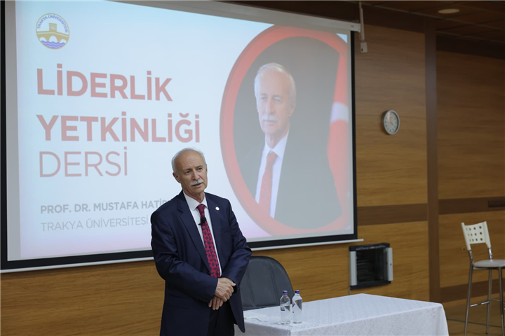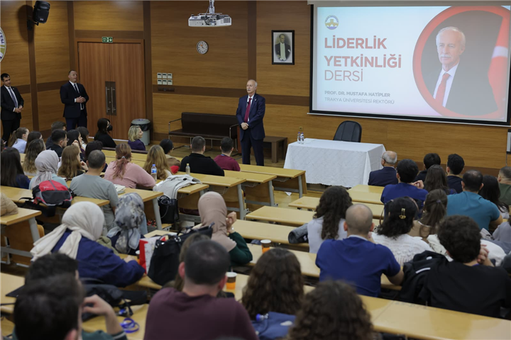 Trakya Üniversitesi Rektörü Prof. Dr. Mustafa Hatipler, Tıp Fakültesi Ratip Kazancıgil Amfisi’nde öğrencilerle bir araya gelerek “Liderlik Yetkinliği” dersi verdi.