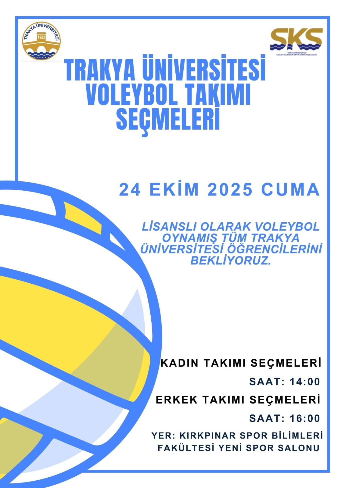 TRAKYA ÜNİVERSİTESİ VOLEYBOL TAKIMI SEÇMELERİ