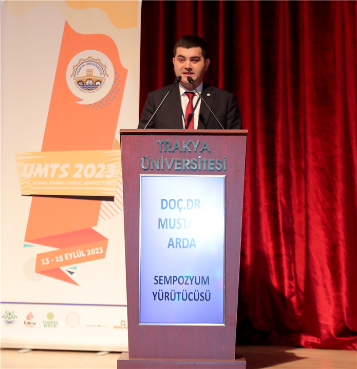 Trakya Üniversitesi Mühendislik Fakültesi öğretim üyesi ve 21. Ulusal Makina Teorisi Sempozyumu UMTS 2023 Yürütücüsü Doç. Dr. Mustafa Arda, sempozyum hakkında bilgi verdiği konuşmasında “Sempozyumda 3 davetli konuşmacı yer alacaktır. Yaklaşık 70 katılımcı 44 bildiri sunumunu, ikisi özel oturum olmak üzere 13 oturumda gerçekleştireceklerdir. Sempozyumun organizasyonunu genç bir ekiple gerçekleştirdik. Böylesine köklü bir organizasyonda yer almak bizler için çok önemli bir tecrübe oldu.” diyerek emeğe geçenlere teşekkür etti.