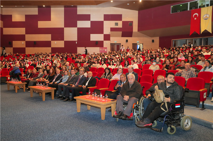 Özel Eğitim Topluluğu Danışmanı Dr. Öğr. Üyesi Feyza Nazan Gündüz konuşmasında, 3 Aralık’ın sadece bir tarih olmadığını, gerçek engelin zihinde başladığını hatırlatan bir farkındalık günü olduğunun altını çizerek “Bizlere düşen görev her bireyin eşit haklara sahip olduğu bir ortam yaratmaktır.” dedi.