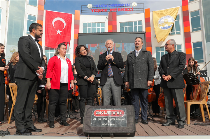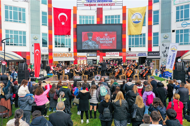 Trakya Üniversitesi Yaşam Merkezi’nde gerçekleştirilen "Cumhuriyet Bayramı Konserinin" Orkestra Şefliğini Dr. Öğr. Üyesi Vahdet Çalışkan, Koro Şefliğini ise Doç. Dr. Zerrin Tan üstlendi.