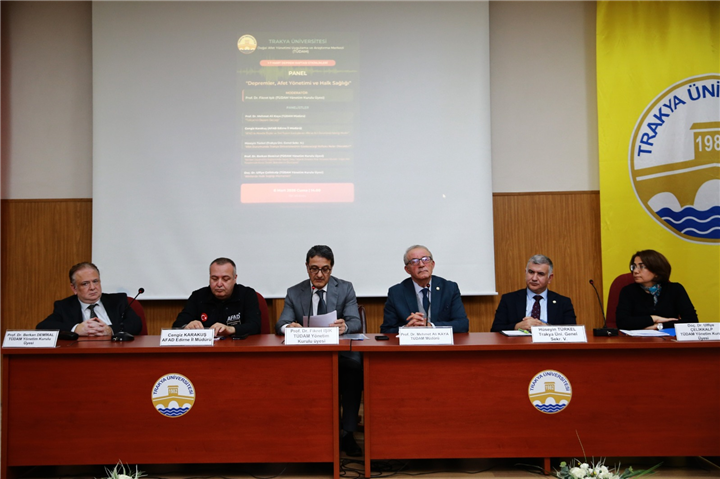 Trakya Üniversitesi Doğal Afet Yönetimi Uygulama ve Araştırma Merkezi (TÜDAM) tarafından Deprem Haftası etkinlikleri kapsamında “Depremler, Afet Yönetimi ve Halk Sağlığı” başlıklı bir panel gerçekleştirildi.