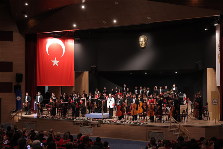 Trakya Üniversitesi Devlet Konservatuvarı Gençlik Senfoni Orkestrası, Cumhuriyetimizin 102. yılı kutlamaları kapsamında anlamlı bir konsere imza attı. Doç. Deniz Sever yönetimindeki orkestra, Balkan Kongre Merkezi’nde müzikseverlerle buluştu.