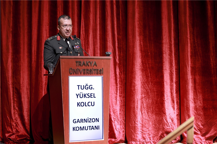 Edirne Garnizon Komutanı Tuğgeneral Yüksel Kolcu ise bilim dünyasında yaşanan gelişmelerin günümüzde hem çok hızlı hem de çok boyutlu bir hâl aldığını ifade ederek, bu değişim hızına uyum sağlanamaması hâlinde görevlerin tam manasıyla yerine getirilemeyeceğini söyledi. Görevlerin layıkıyla yapılmasının vatana ve orduya karşı önemli bir sorumluluk olduğuna dikkat çeken Kolcu, bilgiye ve sürekli gelişime verilen önemin altını çizdi. Kolcu ayrıca, düzenlenen liderlik eğitimi dolayısıyla Trakya Üniversitesine teşekkür ederek, üniversite–kamu iş birliğinin güçlenerek devam etmesini temenni etti.