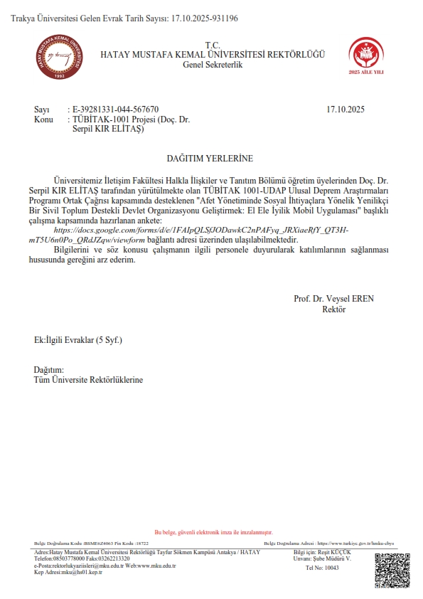 TÜBİTAK-1001 PROJESİ (DOÇ. DR. SERPİL KIR ELİTAŞ)