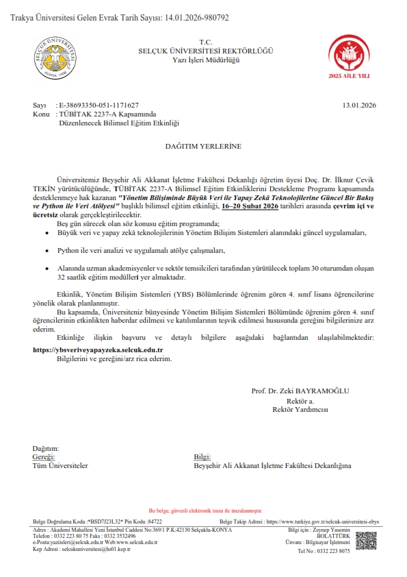 TÜBİTAK 2237-A KAPSAMINDA DÜZENLENECEK BİLİMSEL EĞİTİM ETKİNLİĞİ