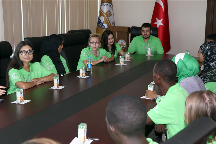 Yurtdışı Türkler ve Akraba Topluluklar Başkanlığı, Yunus Emre Enstitüsü ve Trakya Üniversitesi işbirliği ile düzenlenen 2014 Türkçe Yaz Okulu kapsamında Trakya Üniversitesi Dil Eğitimi ve Öğretimi Araştırma ve Uygulama Merkezi’nde (TÜDEM) Türkçe eğitimi alan yabancı öğrenciler 05 Ağustos 2014 tarihinde Rektörümüz Prof. Dr. Yener Yörük’ü ziyaret etti. Ziyarette Yurtdışı Türkler ve Akraba Topluluğu Başkanlığı Trakya Koordinatörü Fatih Ot da bulundu.