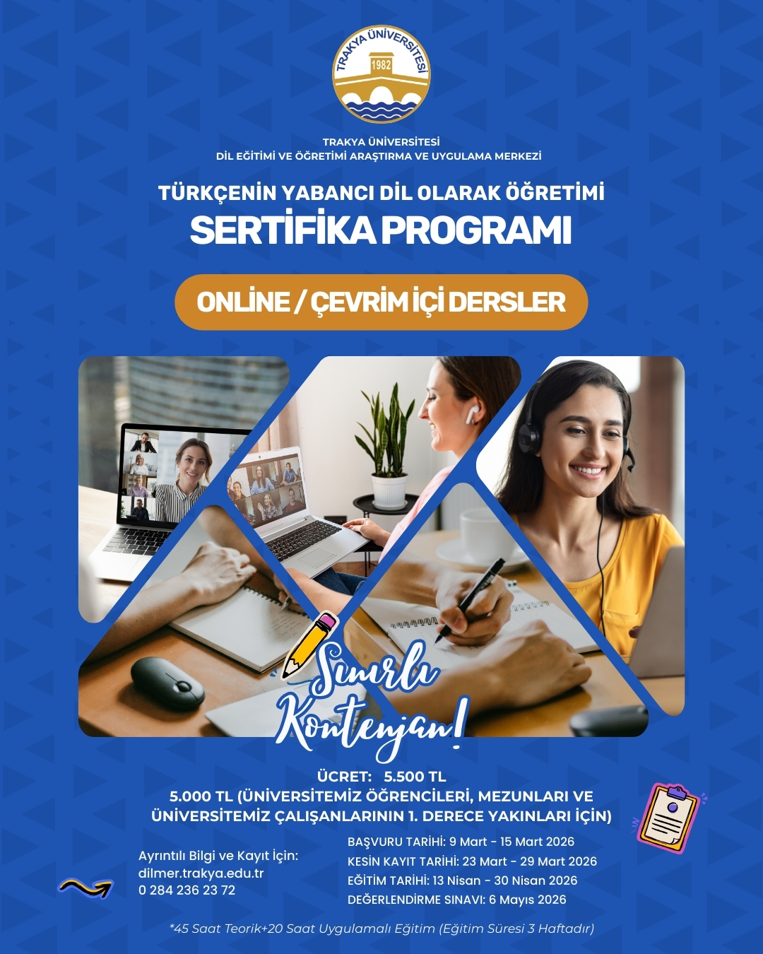 Kontenjan sınırlı olup, başvuruların belirtilen tarihler içerisinde tamamlanması önem arz etmektedir.