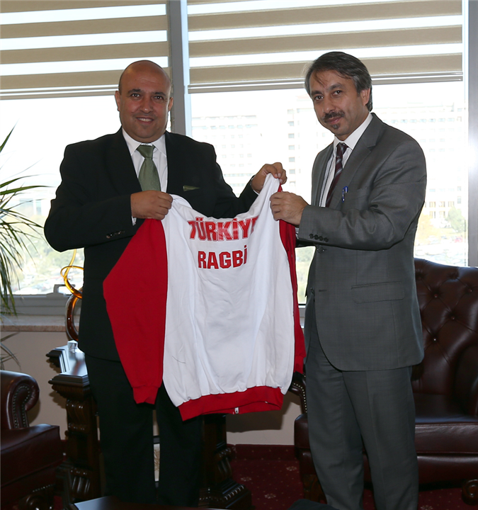 Türkiye - Bosna Hersek Ragbi karşılaşması için İlimizde bulunan Türkiye Ragbi Federasyonu Başkanı Şahin Kömürcü ve Yrd. Doç. Dr. Mustafa Hatipler 21 Ekim 2014 tarihinde Rektör Prof. Dr. Yener Yörük’ü ziyaret etti. Ziyarette Sağlık Kültür Spor Daire Başkan Vekili Ahmet Yence de hazır bulundu.