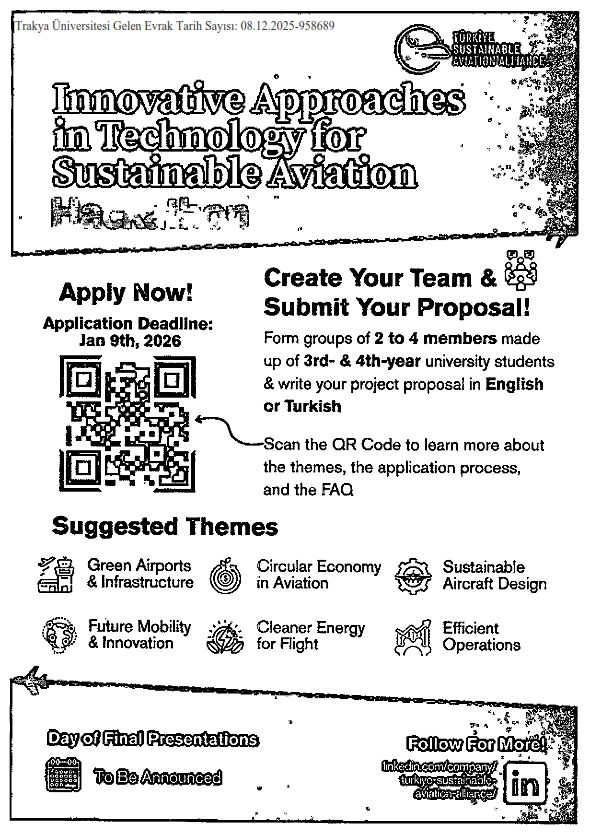 TÜRKİYE SÜRDÜRÜLEBİLİR HAVACILIK PLATFORMU-ÜNİVERSİTE ÖĞRENCİLERİNE YÖNELİK HACKATHON YARIŞMASI.