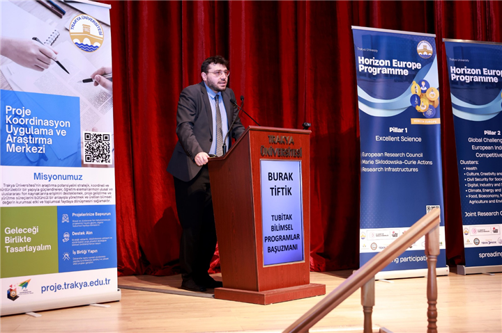 İkinci oturumda ise Ebru Soyuyüce Aydın “Ufuk Avrupa 2026 Çalışma Programı ve Araştırma Altyapıları (INFRA) Çağrıları”; Trakya Kalkınma Ajansı Teknoloji ve Sanayi Birimi Uzmanı Tuğrul Kağan Asan, “Ufuk Avrupa INFRA Kapsamında EDİH West Marmara İle Araştırma Altyapılarına Erişim ve Kapasite Geliştirme” ve Trakya Üniversitesi Rektör Danışmanı ve Dijital Dönüşüm Koordinatörü Dr. Öğr. Üyesi Cem Taşkın ise “Dijital Dönüşüm Perspektifinden Üniversitemizin Araştırma Altyapılarının Geliştirilmesine Yönelik Çalışmaları” başlıklı sunumu ile katılımcıları bilgilendirdi.