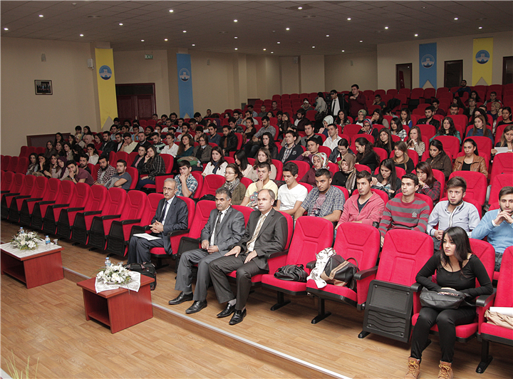 Kurum Başkanı Prof.Dr. Nurettin Kaldırımcı’ya hitaben : Öğrencilerimizle buluşma teklifimizi geri çevirmeyen ve davetimize büyük bir içtenlikle ve tevazu ile iştirak eden Değerli Başkanımıza ve Hocamıza teşekkür ediyor ,sunumlarını yapmak üzere kürsüye davet ediyorum” dedi.