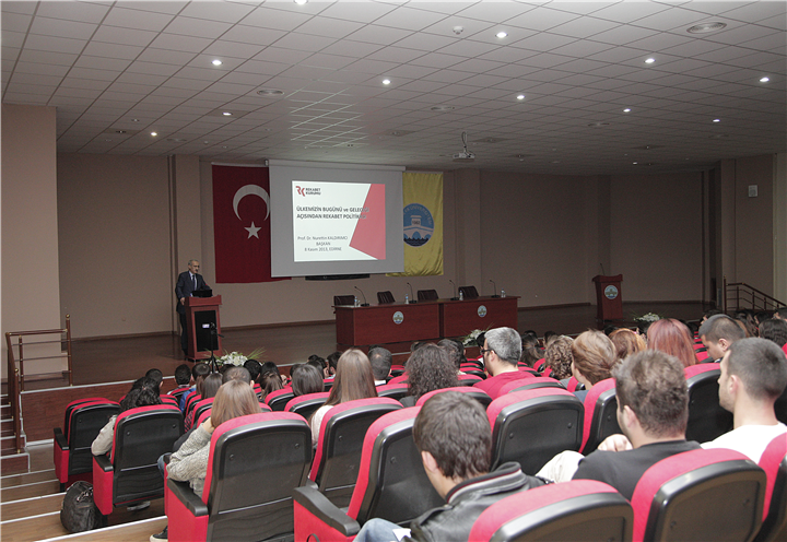 Ziyaret sonrasında Trakya Üniversitesi Girişimcilik Uygulama ve Araştırma Merkezi’nin organize ettiği, İktisadi ve İdari Bilimler Fakültesinin ev sahipliğini yaptığı, İktisat Topluluğu öğrencilerinin aktif katkıları ile Rekabet Kurumu Başkanı Prof.Dr. Nurettin Kaldırımcı’nın sunduğu “Ülkemizin Bugünü ve Geleceği Açısından Rekabet Politikası” konulu konferans gerçekleştirildi.