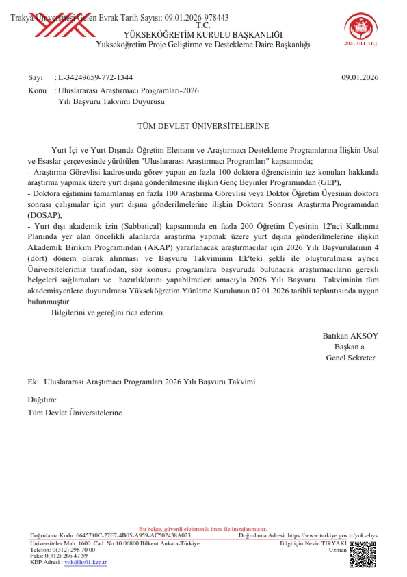 ULUSLARARASI ARAŞTIRMACI PROGRAMLARI2026 YILI BAŞVURU TAKVİMİ DUYURUSU