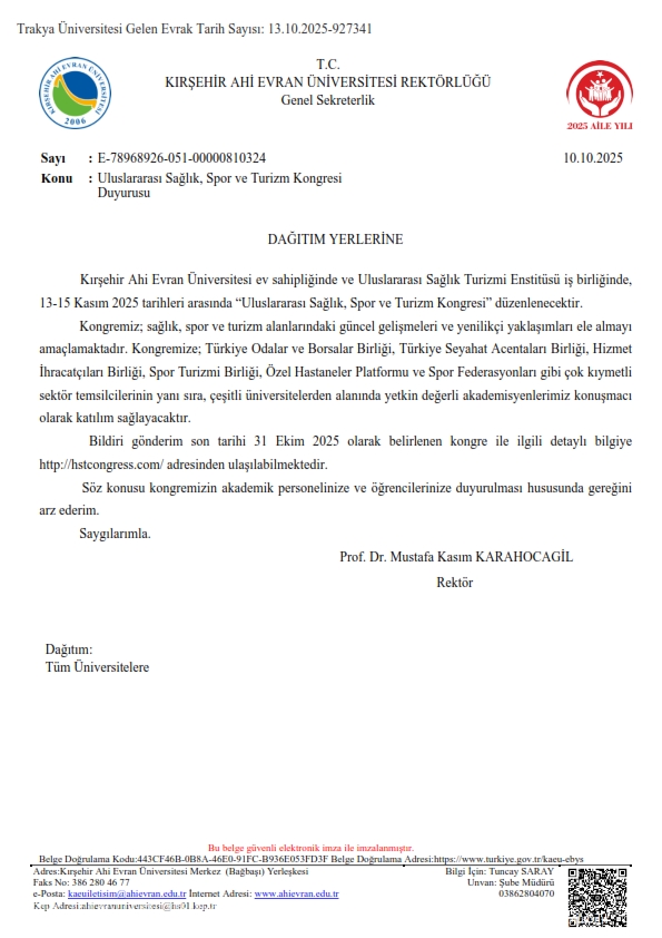ULUSLARARASI SAĞLIK, SPOR VE TURİZM KONGRESİ DUYURUSU