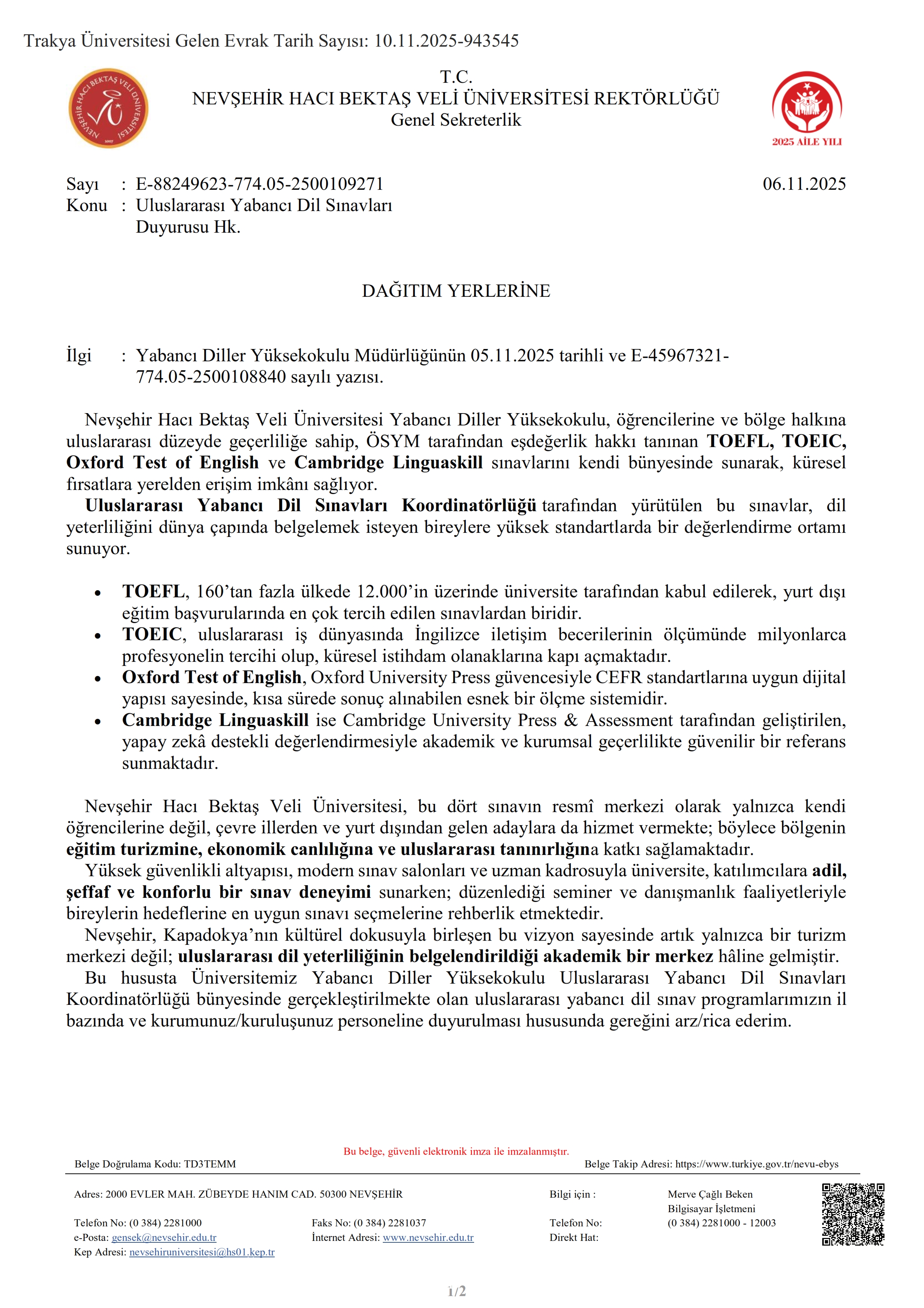 ULUSLARARASI YABANCI DİL SINAVLARI