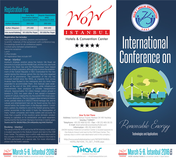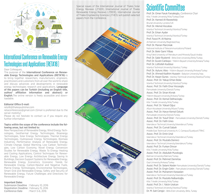 ULUSLARARASI YENİLENEBİLİR ENERJİ TEKNOLOJİLERİ VE UYGULAMALARI RETA 16 KONFERANSI