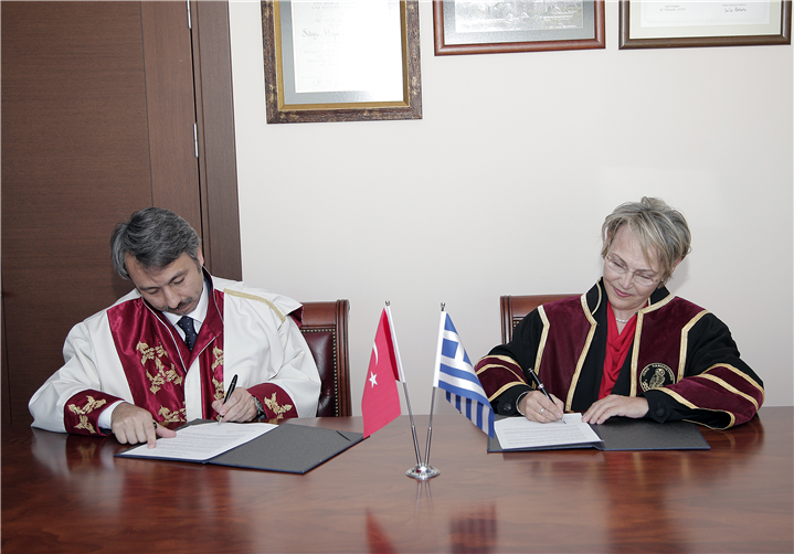 Ionian Üniversitesi Rektörü Prof. Anastasia Sali–Papasali ve Prof. Panagiotis Karydis, 8 Ekim 2013 tarihinde Rektör Prof. Dr. Yener YÖRÜK’ü makamında ziyaret etti.
