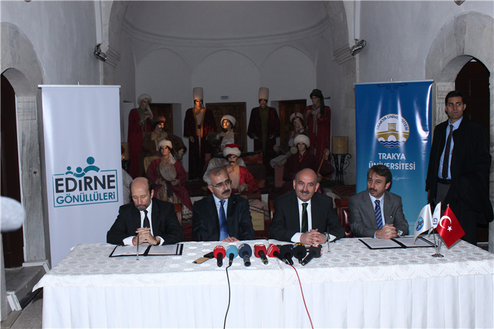 Rektör Prof. Dr. Yener YÖRÜK, “Bu bina, 1984 yılında üniversitemize devredilmişti ve harap haldeydi. Kurucu Rektörümüz Prof. Dr. Ahmet Karadeniz hocamızın büyük gayretleriyle kazanıldı. Daha sonra 2000’li yıllarda müze olan bu mekân, şu an Selimiye Camii’nden sonra Edirne’de yerli ve yabancı turistlerin en çok ziyaret ettiği ikinci mekân. Artık yenilenme ihtiyacı var. Günümüzün modern aydınlatma ve tanıtım yöntemlerinin uygulaması burada yapılacak. Teşriflerinden dolayı sayın bakanımıza ve sayın valimize; katkılarından dolayı da Nezih BARUT’a teşekkür ediyorum. Müzemiz sadece yurtiçi değil yurtdışından da ziyaretçi alıyor. 2007 yılında Avrupa müze ödülünü almıştı. Yenilendikten sonra inşallah yeni ödüller için hep birlikte müracaat ederiz.” şeklinde konuştu.