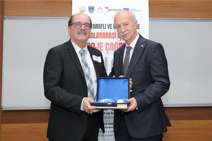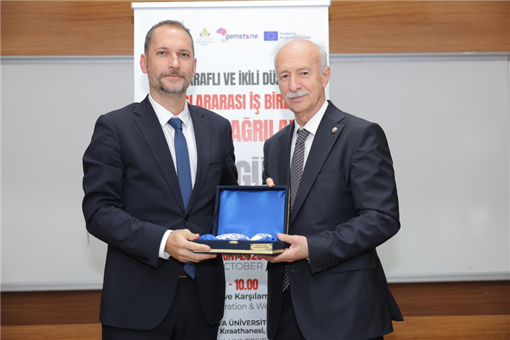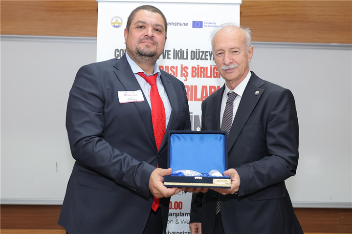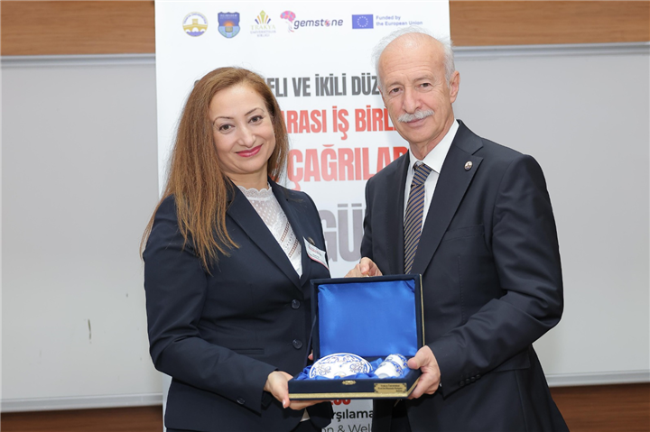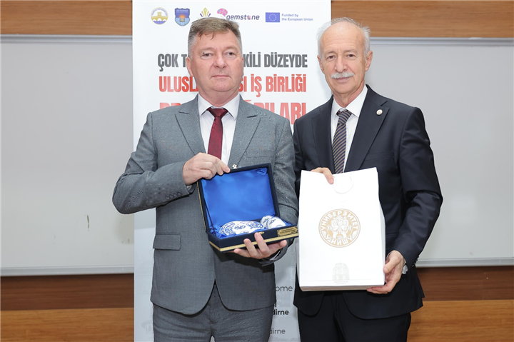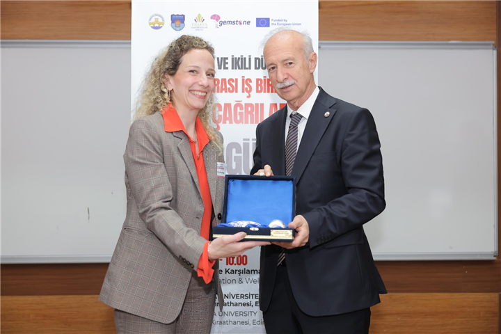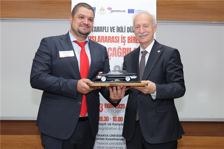 Rektör Prof. Dr. Mustafa Hatipler ise üniversitelerin ürettikleri bilimi şehirle, ülkeyle ve dünyayla paylaşmaları gerektiğini vurguladı. “Uzun bir yolculuğun ilk günündeyiz. Coğrafya kaderdir ancak bu iş birlikleri ile coğrafyanın sunduğu kaderle değil, onun sunduğu bir lütufla hareket etmek istiyoruz.” diyen Hatipler, Trakya Üniversitesinin bugüne kadar çok sayıda uluslararası projeye imza attığını belirtti. Özellikle Mavi Büyüme Projesi ile INTERREG IPA Bulgaristan–Türkiye Programı 2021–2027 kapsamında yürütülen “Meriç’in Zamansız Yolculuğu” projesinin, bu vizyonun somut çıktıları olduğunu ifade etti. Rektör Hatipler, yapılacak yeni iş birlikleriyle geleceğe sevgi ve dostluk dolu bir miras bırakacaklarını söyleyerek, emeği geçenlere teşekkür etti. Açılış konuşmalarının ardından Rektör Prof. Dr. Mustafa Hatipler, konuşmacılara ve TÜBİTAK temsilcilerine hediye takdiminde bulundu.