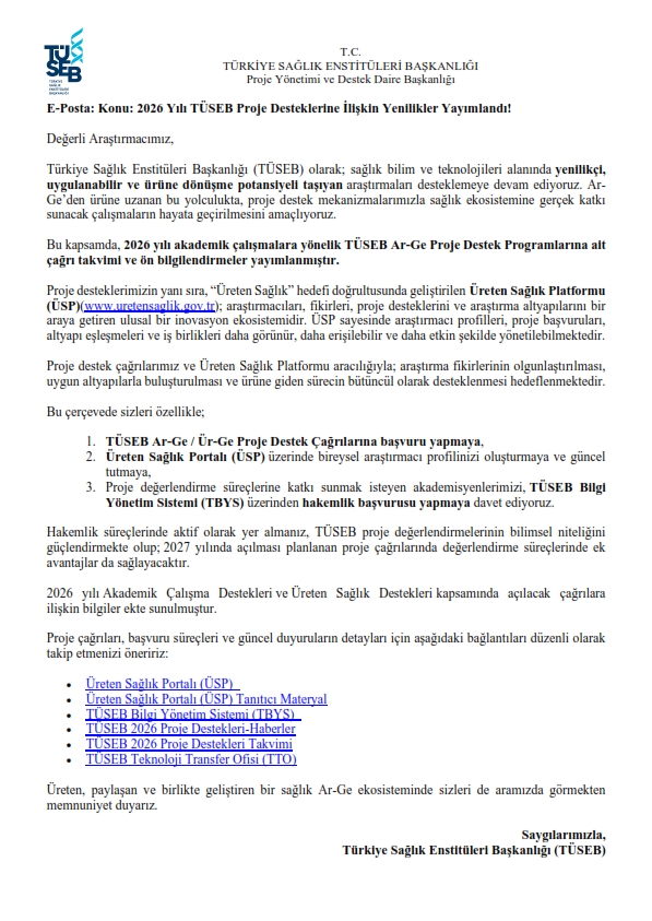 ÜRETEN SAĞLIK PORTALI VE TÜSEB PROJE DESTEKLERİ