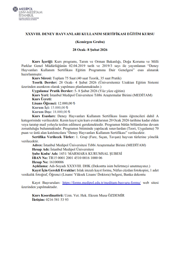 XXVIII. DENEY HAYVANLARI KULLANIM SERTİFİKA