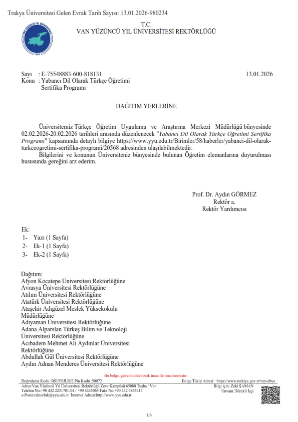 YABANCI DİL OLARAK TÜRKÇE ÖĞRETİMİ SERTİFİKA PROGRAMI