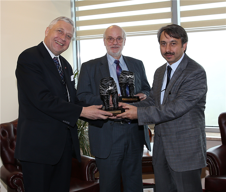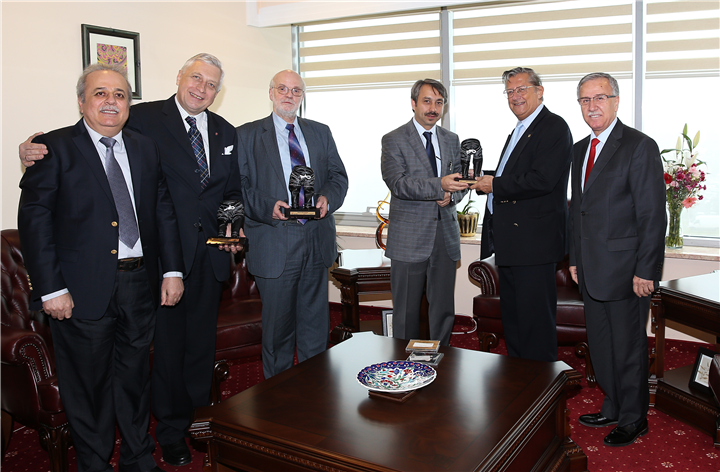 Trakya Üniversitesi Bilimsel Araştırmalar Projesi kapsamında, Master Class vermek üzere Üniversitemiz Devlet Konservatuvarı’nda bulunan “Prof. Pancho Vladigerov” Ulusal Müzik Akademisi Rektör Yardımcısı Prof. Anotoli Krastev, “Prof. Pancho Vladigerov” Ulusal Müzik Akademisi’nden Şef Prof. Angel M. Stankov ve Tyroler Landes Konservatuvarı’ndan Prof. Bojidar Neov 14 Nisan 2014 tarihinde Rektörümüz Prof. Dr. Yener Yörük’ü makamında ziyaret etti.
