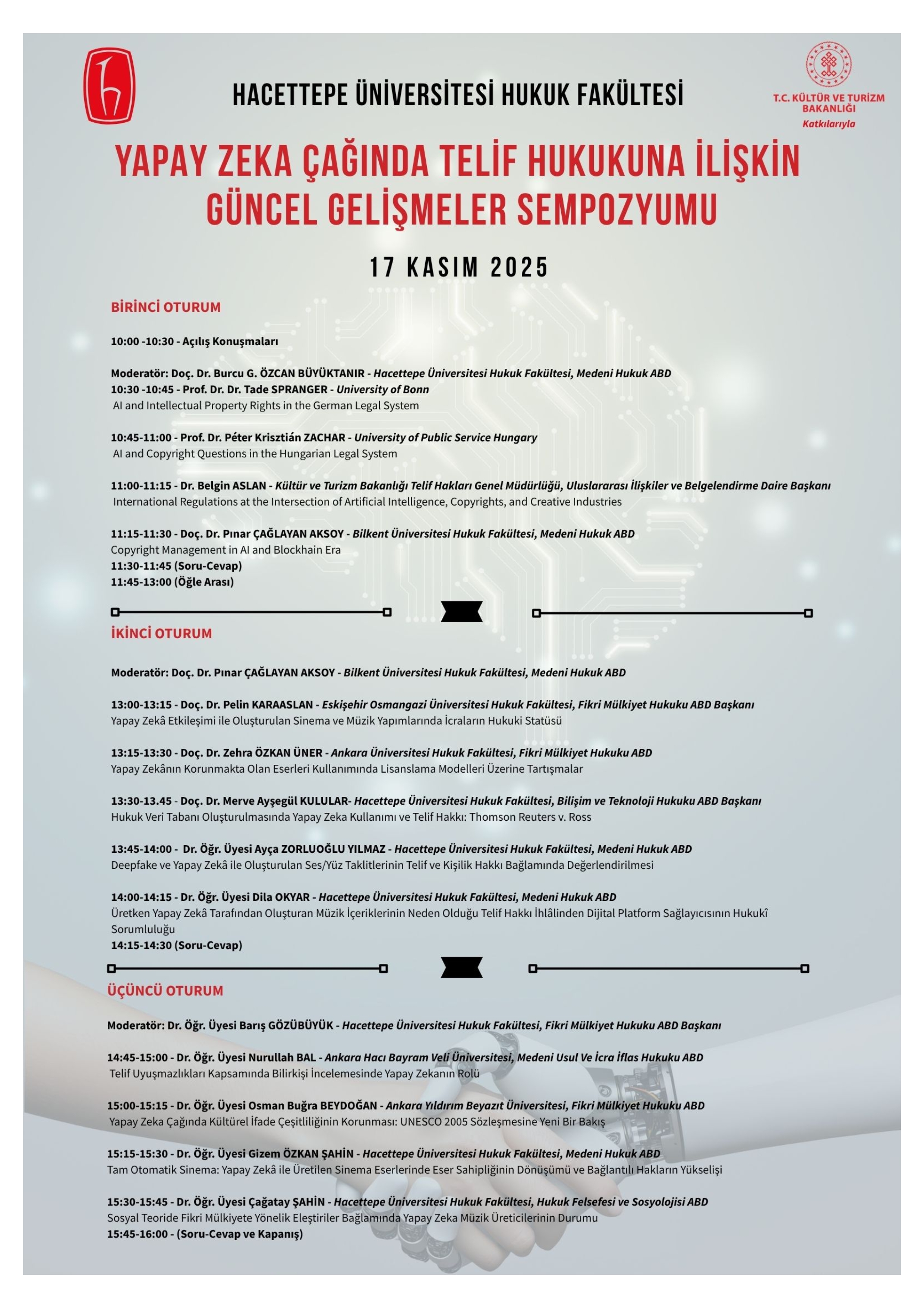 YAPAY ZEKÂ ÇAĞINDA TELİF HUKUKUNA İLİŞKİN GÜNCEL GELİŞMELER SEMPOZYUMU