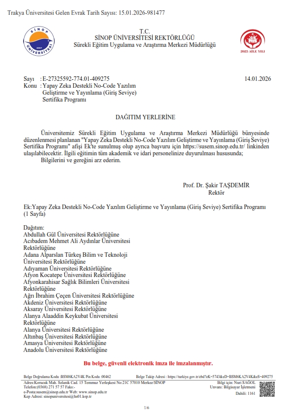 YAPAY ZEKA DESTEKLİ NO-CODE YAZILIM GELİŞTİRME VE YAYINLAMA (GİRİŞ SEVİYE) SERTİFİKA PROGRAMI