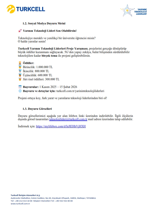 YARININ TEKNOLOJİ LİDERLERİ YARIŞMASI DUYURUSU