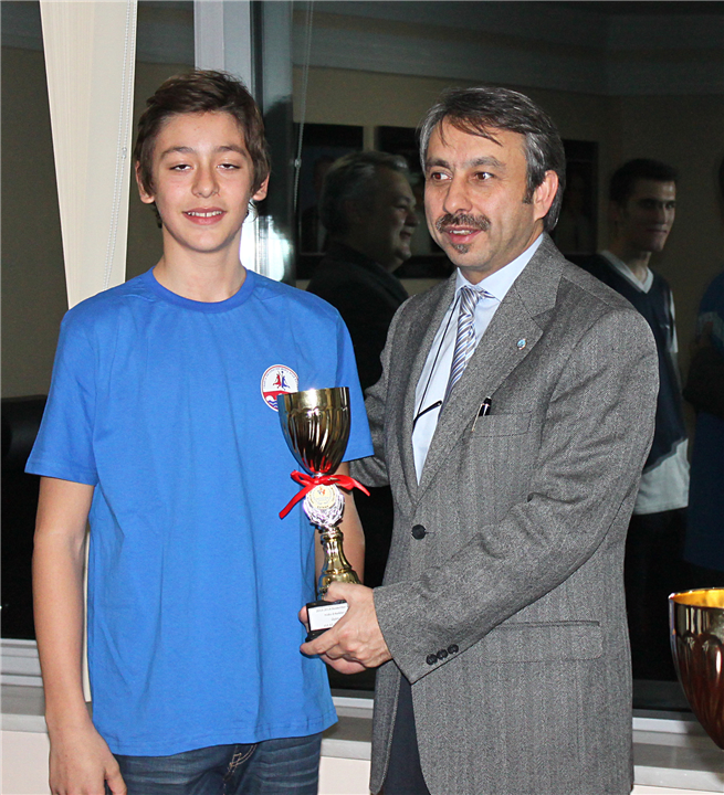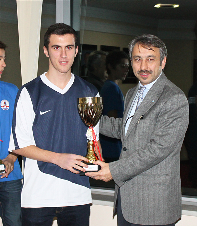 Edirne birincisi olan Yıldız A Basketbol takımı ile Edirne üçüncülüğünü kazanan Yıldız B Basketbol takımlarının kaptanları Barış SUDAGEZER ve Canberk ÇANAK, kupalarını Prof. Dr. Yener YÖRÜK’e takdim etti.