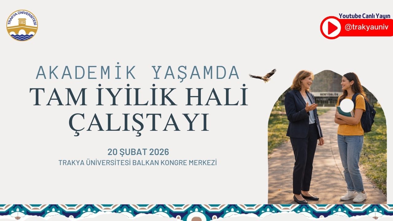 Trakya Üniversitesi tarafından düzenlenen “Akademik Yaşamda Tam İyilik Hali Çalıştayı”, 20 Şubat 2026 Cuma (bugün) günü saat 09.30’da YouTube kanalımızdan canlı yayınla sizlerle..