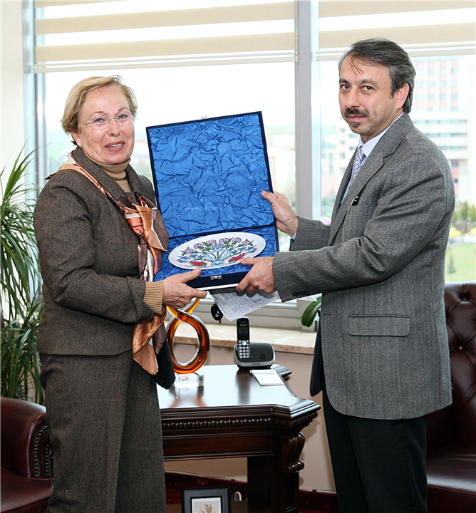Üniversitemiz Tıp Fakültesi Kadın Hastalıkları ve Doğum Anabilim Dalı’nda görev yapan Yrd.Doç.Dr. Ayşe Sevinç Ege, emekliye ayrılması sebebiyle Rektör Prof. Dr. Yener Yörük’ü ziyaret etti. Rektörümüz Ege’ye bugüne kadar üniversitemize verdiği katkı ve emeklerinden dolayı teşekkür etti.