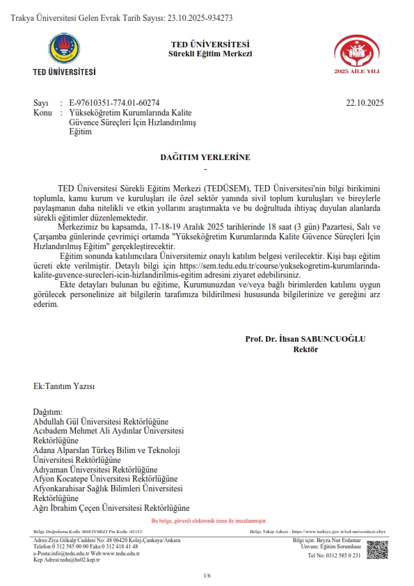 YÜKSEKÖĞRETİM KURUMLARINDA KALİTE GÜVENCE SÜREÇLERİ İÇİN HIZLANDIRILMIŞ EĞİTİM