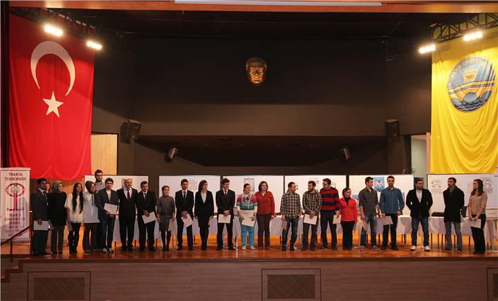 Trakya Üniversitesi tarafından düzenlenen öğrenciler arasında girişimcilik kültürünü geliştirmeyi amaçlayan Yumurta Çatladı Proje Yarışması ödül töreni Edirne Valisi Hasan DURUER, Rektörümüz Prof. Dr. Yener YÖRÜK, Trakya Kalkınma Ajansı Genel Sekreter Vekili Mehmet KARAMAN, Rektör Yardımcıları, Akademisyenler ve öğrencilerin katılımı ile gerçekleşti. Törende Trakya Teknopark Yönetim Kurulu Başkan Vekili Yrd. Doç. Dr. Oğuzhan Erdem, Trakya Kalkınma Ajansı Genel Sekreter Vekili Mehmet KARAMAN, Rektörümüz Prof. Dr. Yener Yörük ve Vali Hasan DURUER birer konuşma yaptı.
