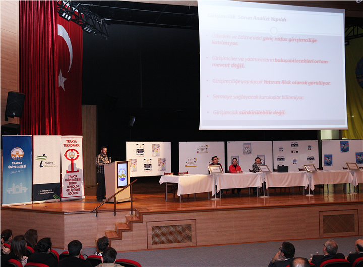 Açılış konuşmasını gerçekleştiren Trakya Teknopark Yönetim Kurulu Başkan Vekili Yrd. Doç. Dr. Oğuzhan Erdem, girişimciliğin önemine dikkat çekerek genç girişimcilerin fikirlerinin bu tür yarışmalar ile filizleneceğini söyledi. Ardından Trakya Kalkınma Ajansı Genel Sekreter Vekili Mehmet KARAMAN bir konuşma yaptı. Konuşmasında artık üretim aşamasında girişimciliğin en önemli noktalardan biri olduğunu belirtti.